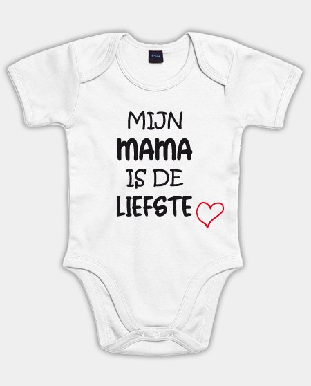 Zoek je een schattige en unieke baby romper? De romper Mijn Mama is de Liefste ❤️ is precies wat je nodig hebt. Deze romper heeft een lieve opdruk die elke moeder trots maakt. Ideaal als cadeautje voor een babyshower, kraamcadeau of gewoon om je kleintje in stijl te kleden. Het rompertje is al voor je ontworpen en voorzien van de tekst Mijn Mama is de Liefste. Je kunt het eenvoudig kant-en-klaar bestellen. De romper is gemaakt van zachte, comfortabele stof en is geschikt voor dagelijks gebruik. Perfect voor elke babyhuid.